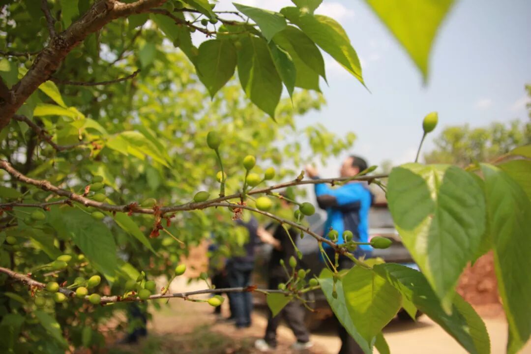 大约再过一个星期,樱桃们就将红透整个山谷,现在,有些急忙展示自己的果实,已开始挂红,就待一夜春风把她们的红妆再次梳理。