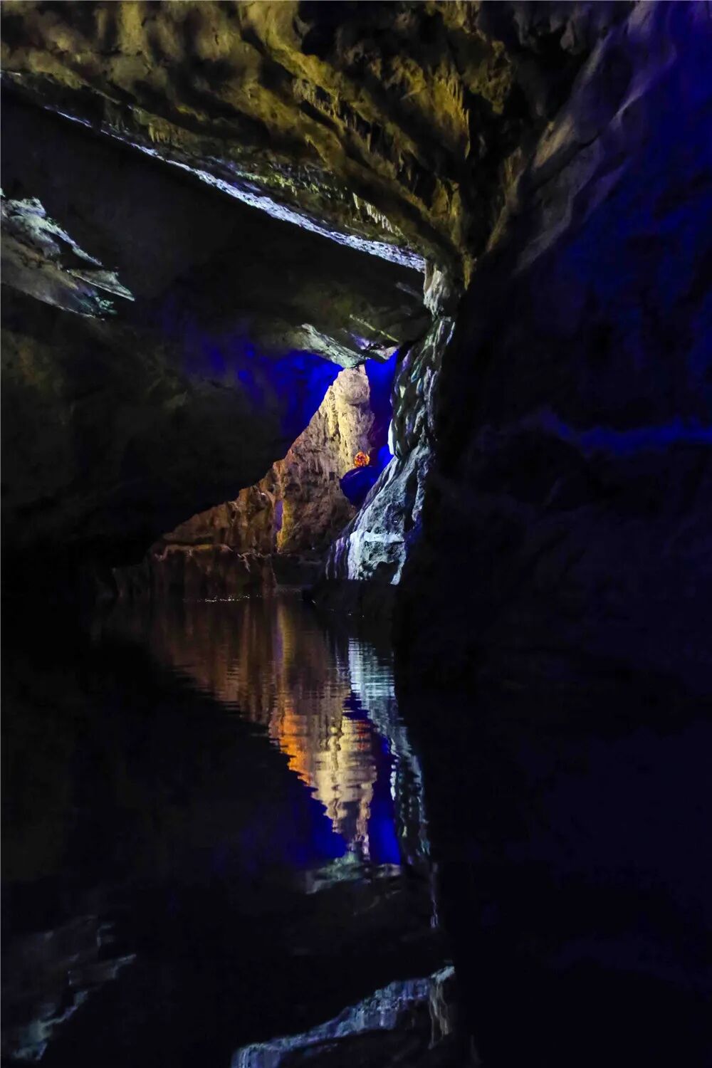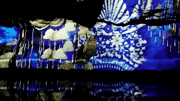 乘船游走在洞天之间,不仅可以欣赏鬼斧神工的溶洞景观,还可以看到迷幻的声光电投影,仿佛穿梭在时光轨道。