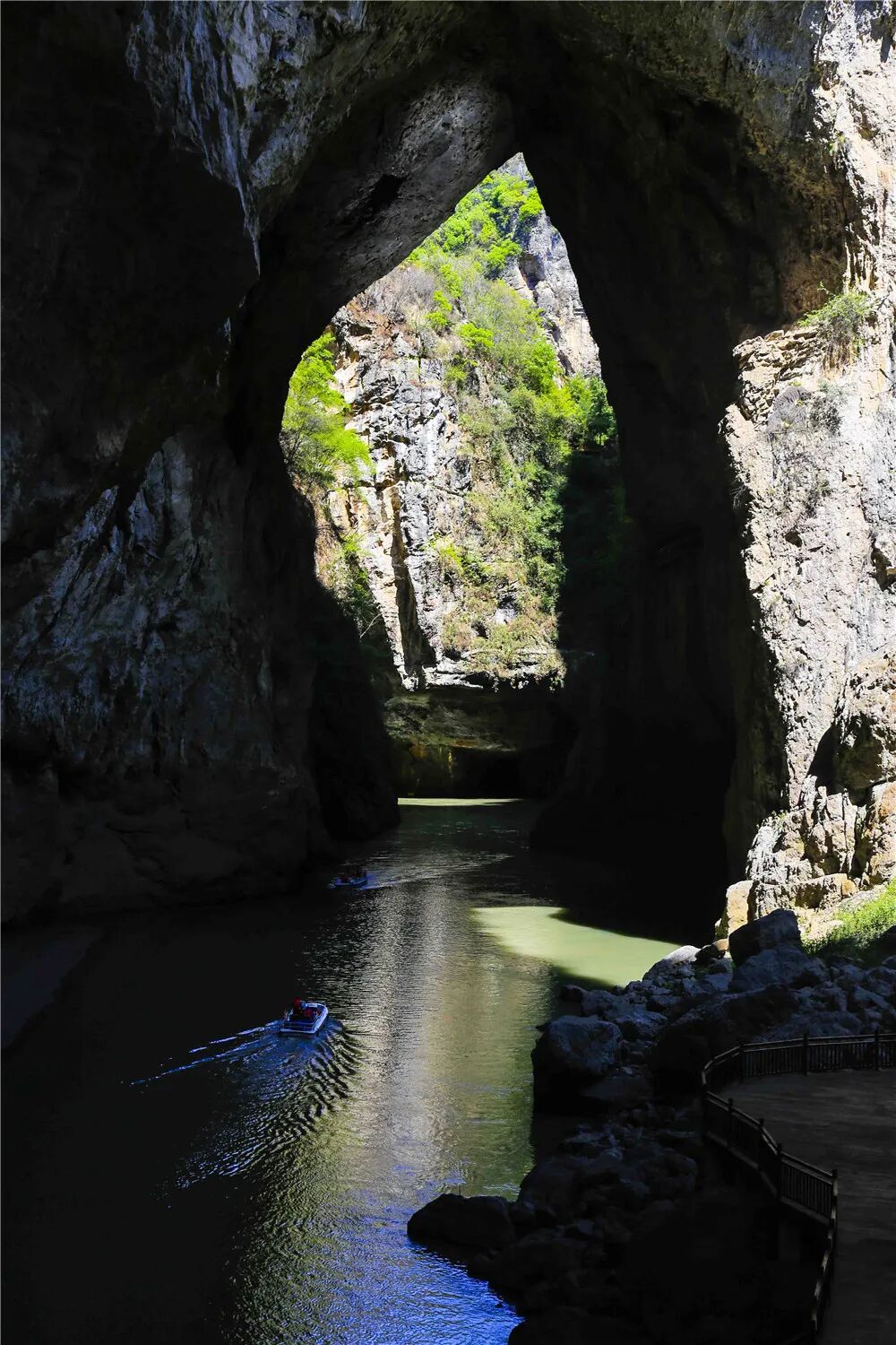 数万年前,入地伏流经过这里,长约7公里的河段上,便开出了九个大天窗,泛舟河上,天空时隐时现,“九洞天”因此而得名!
