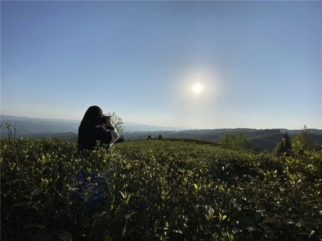 游走在茶海,恰逢傍晚日落,傍晚的晚霞在日光的照耀下愈发明艳动人,随手一拍都能成就一张大片。